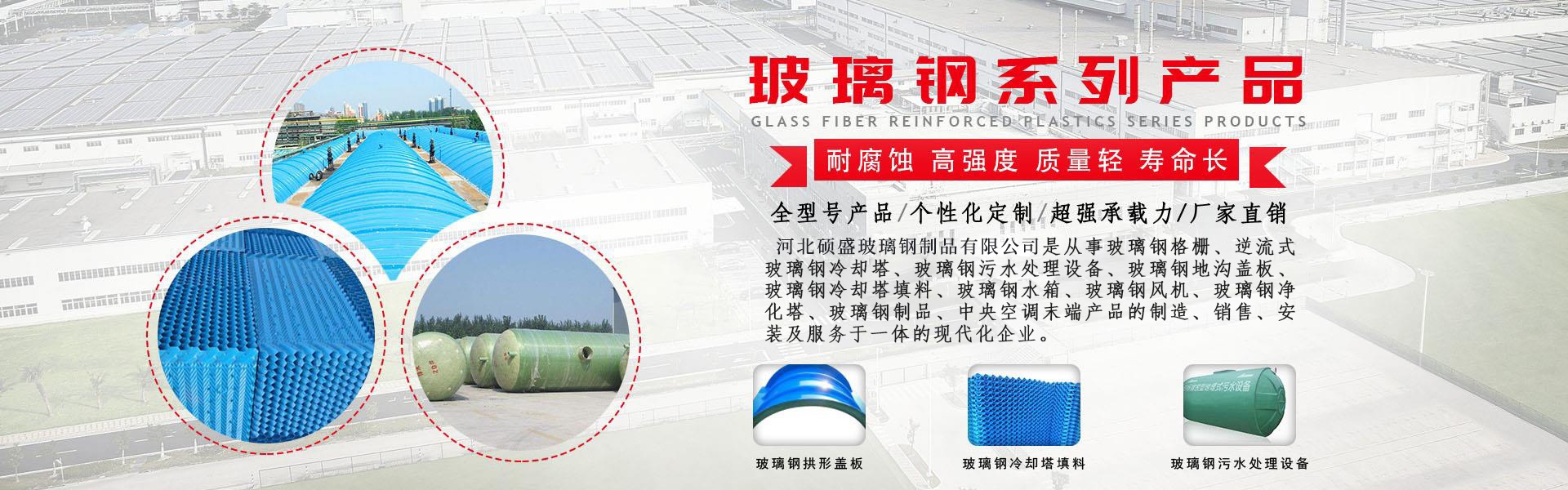 河北碩盛玻璃鋼制品有限公司,是從事洗車房玻璃鋼格柵蓋板、玻璃鋼拱形蓋板、玻璃鋼格柵蓋板、玻璃鋼地溝蓋板、玻璃鋼冷卻塔填料、橫流式玻璃鋼冷卻塔、逆流式玻璃鋼冷卻塔、玻璃鋼電纜橋架、玻璃鋼污水處理設(shè)備、污水池蓋板、玻璃鋼格柵、玻璃鋼冷卻塔、玻璃鋼水箱、玻璃鋼風機、玻璃鋼凈化塔、玻璃鋼制品、中央空調(diào)末端產(chǎn)品的制造、銷售、安裝及服務(wù)于一體的現(xiàn)代化企業(yè)。我公司已成為集工程預(yù)算、技術(shù)咨詢、產(chǎn)品設(shè)計、制造、安裝調(diào)試、售后服務(wù)于一體的公司,形成了一整套規(guī)范化、科學(xué)化、系統(tǒng)化管理體系。產(chǎn)品遍布天津、遼寧、山西、江蘇、內(nèi)蒙、湖北、黑龍江、貴州等地區(qū)。